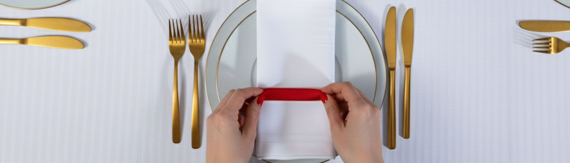 Prends un ruban de couleur (20–30 cm), entoure ta serviette de table et fais un joli nœud. Sur une serviette blanche, l'effet est garanti. Variante express : glisse une étiquette avec le prénom de l'invité dans le ruban, ton rond de serviette devient un marque-place. Idéal pour une décoration de mariage ou un dîner de saison.